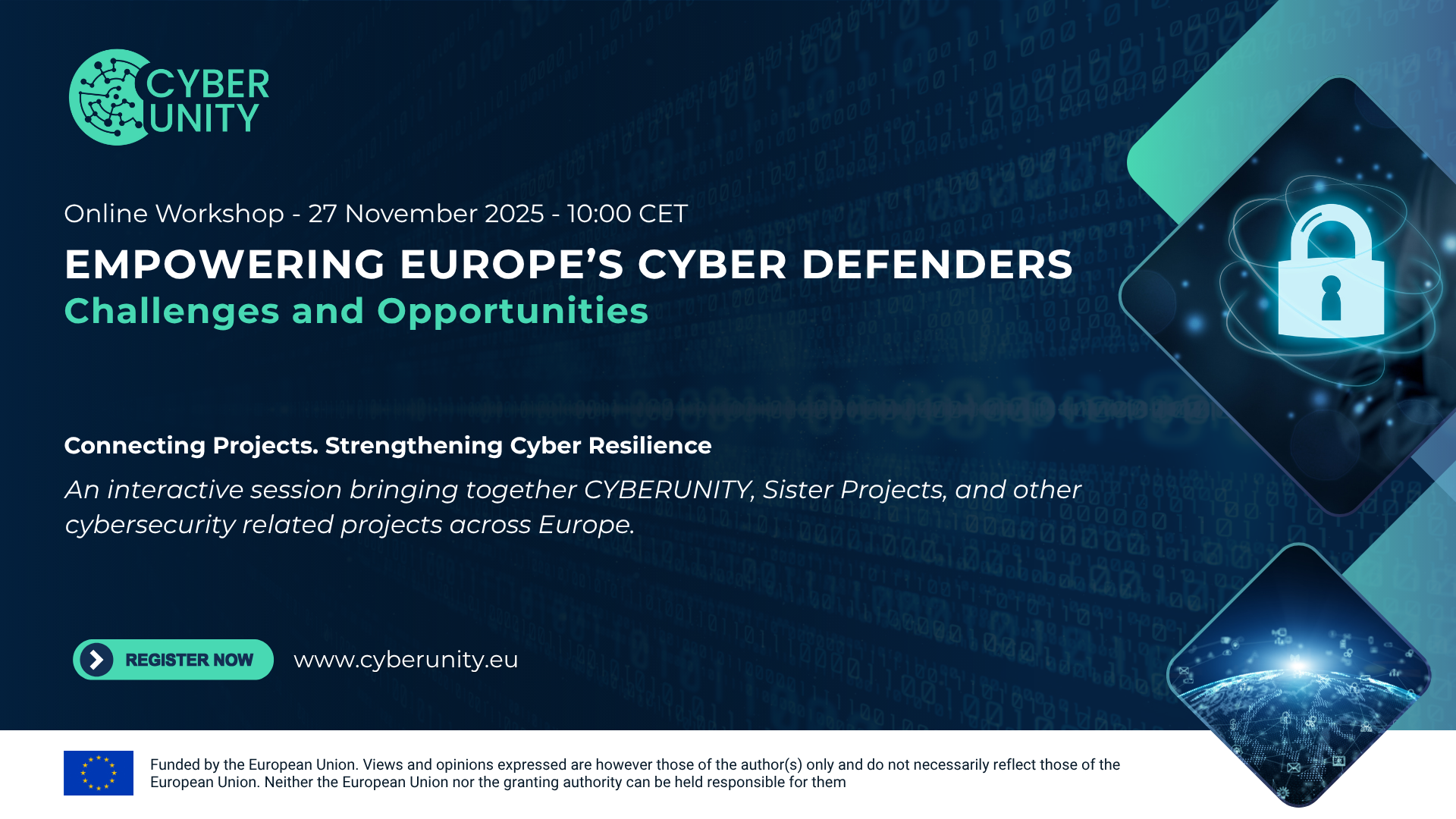 CYBERUNITY Online Workshop: Empowering Europe’s Cyber Defenders Date: 27 November 2025 Time: 10:00–12:00 CET Format: Online via Webex (registration required) CYBERUNITY invites you to an online workshop dedicated to enhancing cooperation